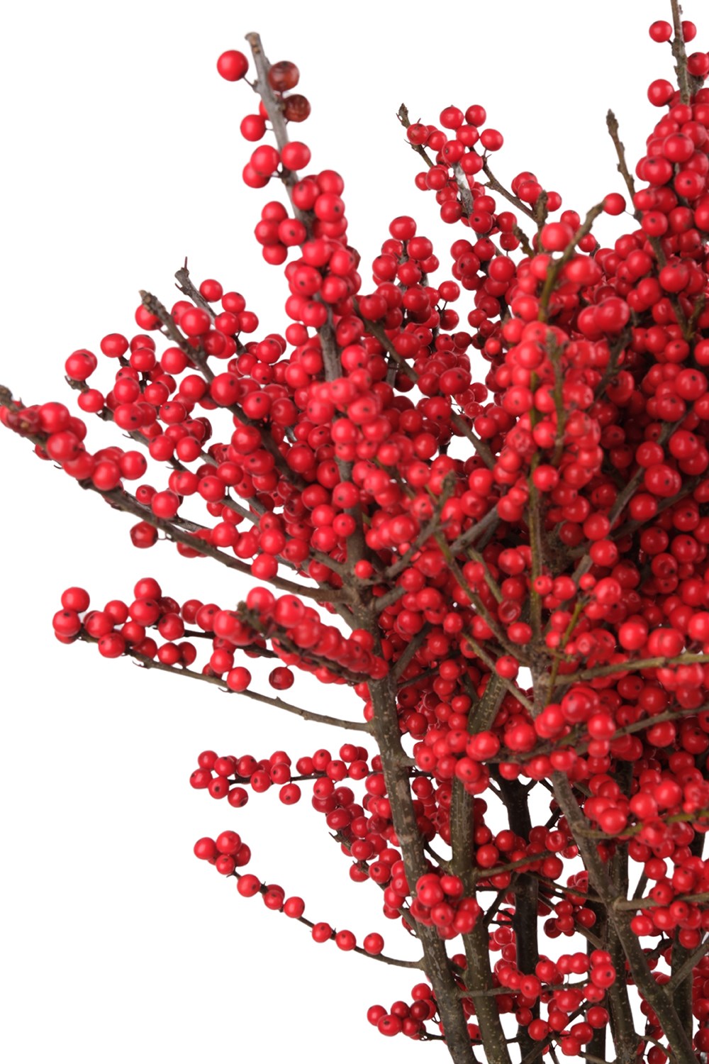 Ilex (Kış Çileği), yılbaşı dekorasyonlarının en göz alıcı bitkilerinden biridir. Canlı kırmızı çilekleri ve doğal dallarıyla, ev ve iş yerlerinde güçlü bir yeni yıl atmosferi oluşturur. Vazoda, kapı süslerinde, yılbaşı aranjmanlarında ve fotoğraf çekimi dekorlarında sıkça tercih edilen premium bir bitkidir.