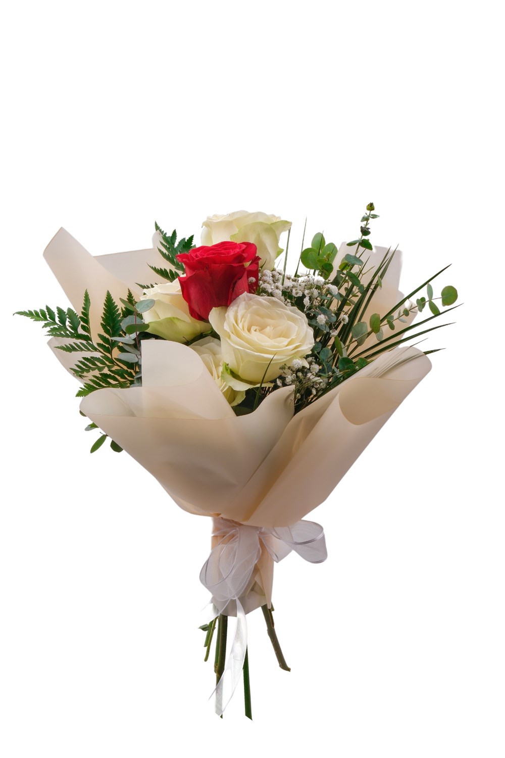Kırmızı & Beyaz Gül Buketi – Premium Tasarım