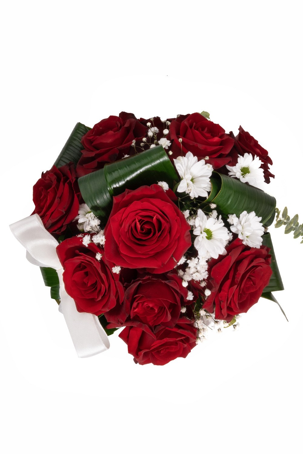 Seramik içine düzenlenmiş 10 dal kırmızı gül.. Çiçeği destekleyen Fenix yaprakları ve Okaliptus dalları ile birlikte. Doğum günü, yıl dönümü, evlilik teklifi gibi bir çok özel an için şık bir üründür.