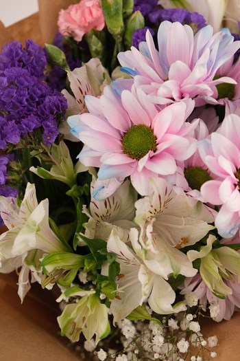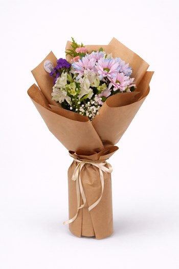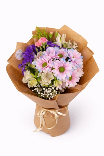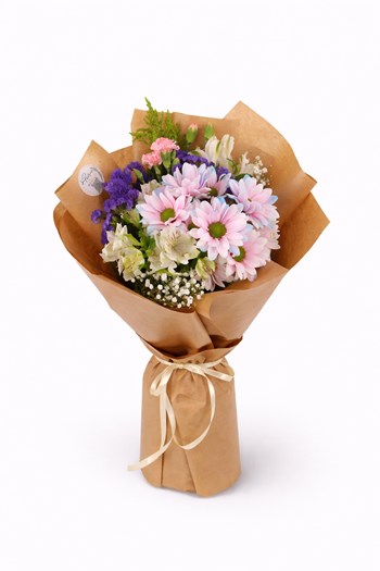 Doğallığın ve zarafetin en güzel hali… Pastel tonlarda papatyalar, mevsim çiçekleri ve doğal kraft ambalaj ile hazırlanan bu özel buket, enerjik ve samimi bir hediye seçeneğidir.