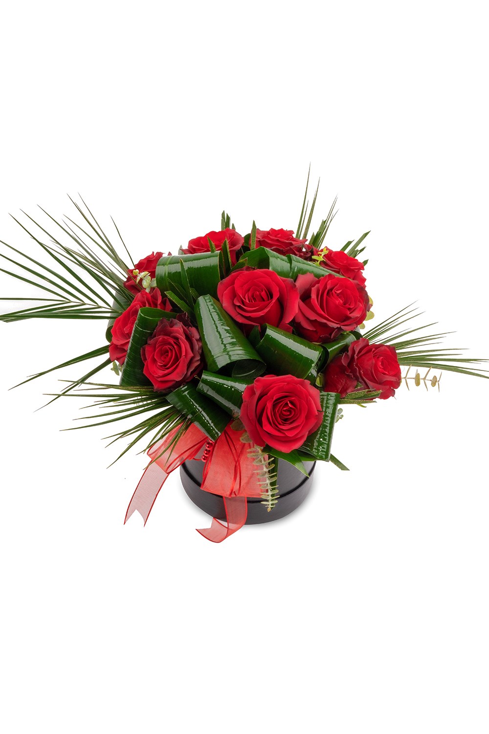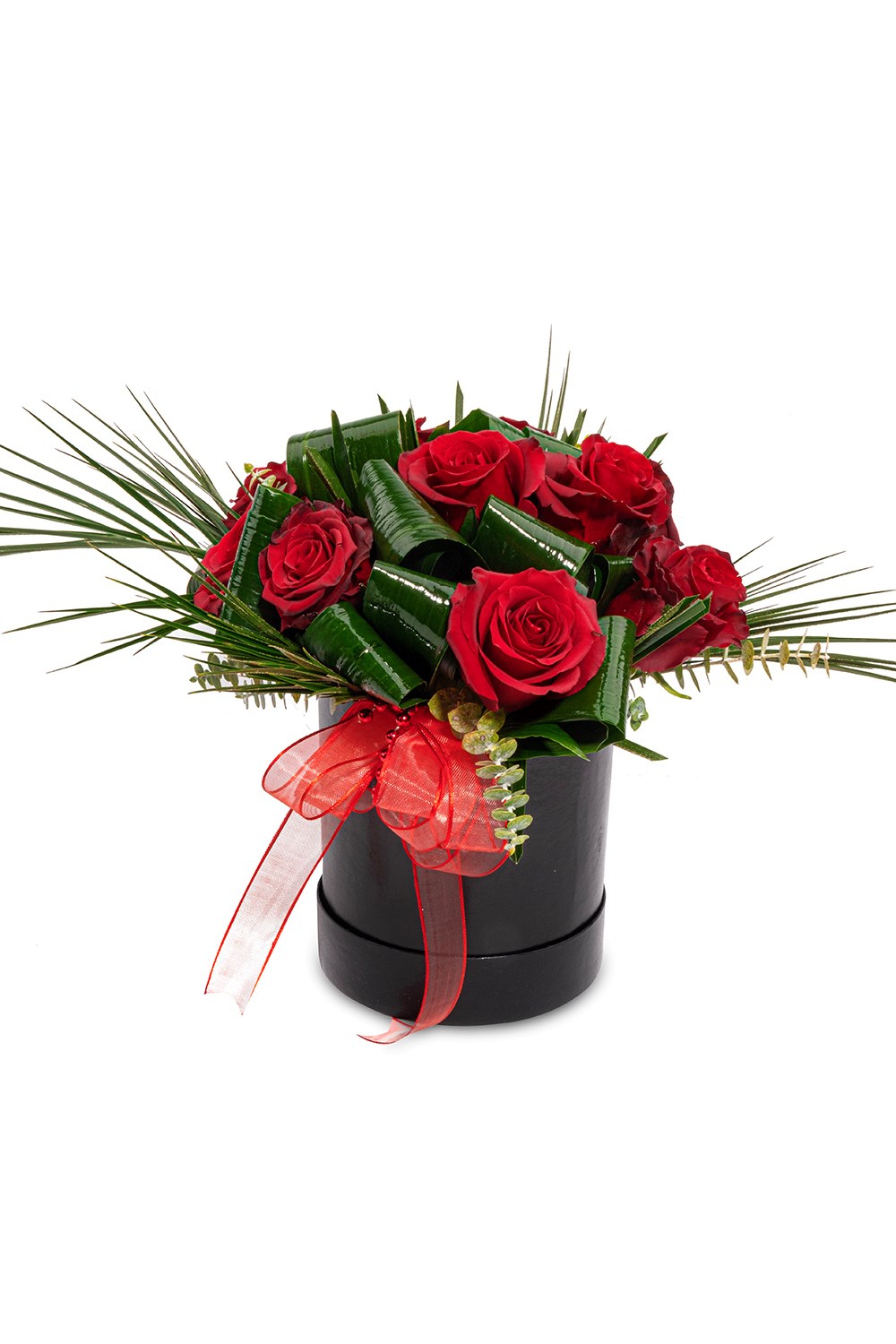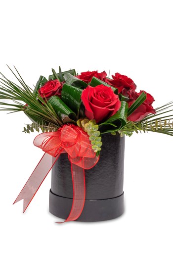 Punica Black Passion tasarımı, modern siyah silindir kutu içerisinde özenle yerleştirilmiş premium kalite kırmızı güllerle hazırlanır.