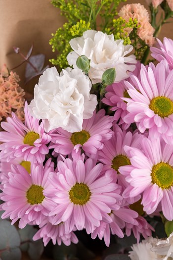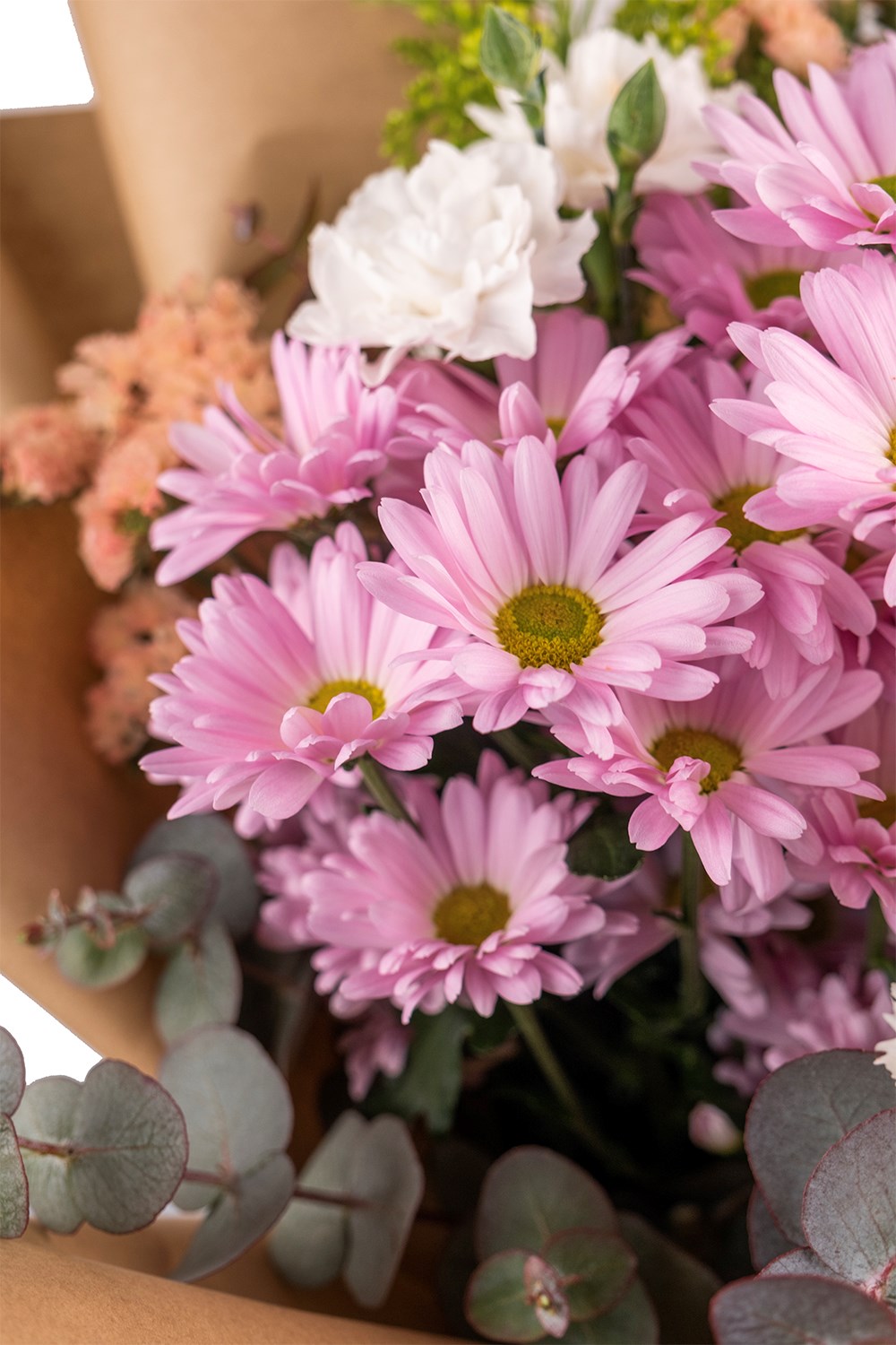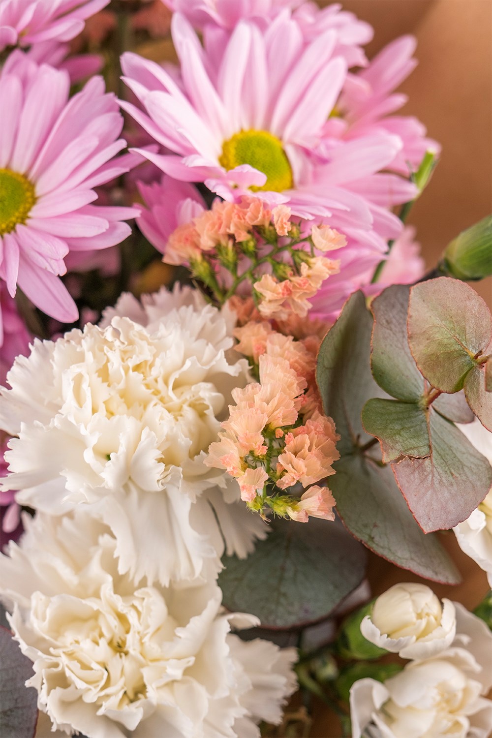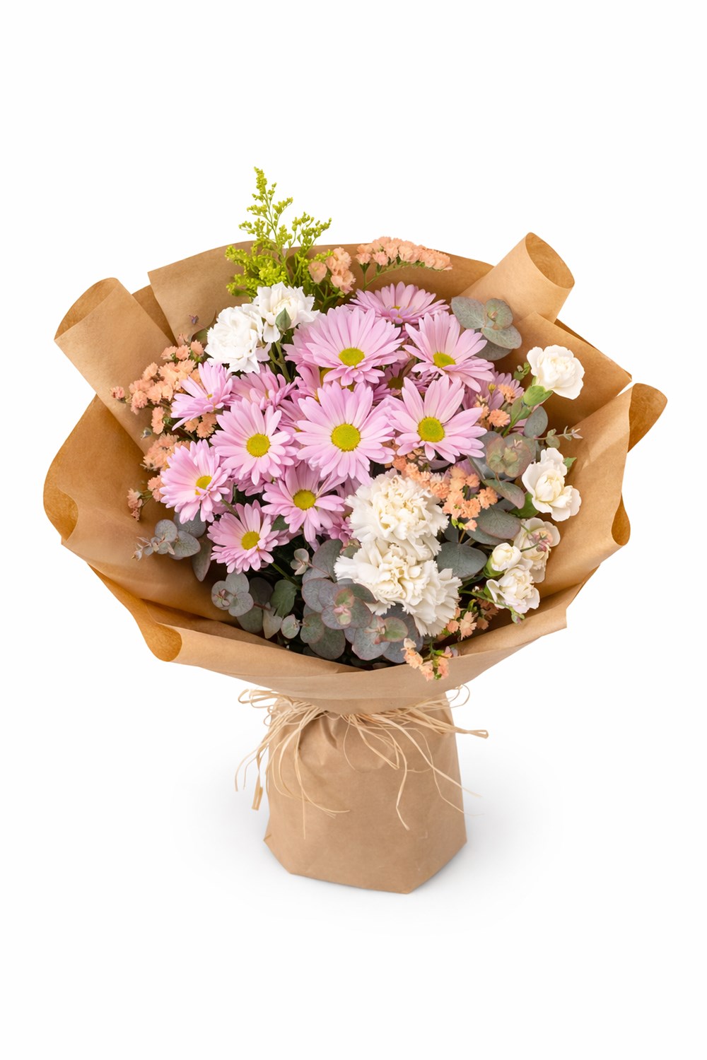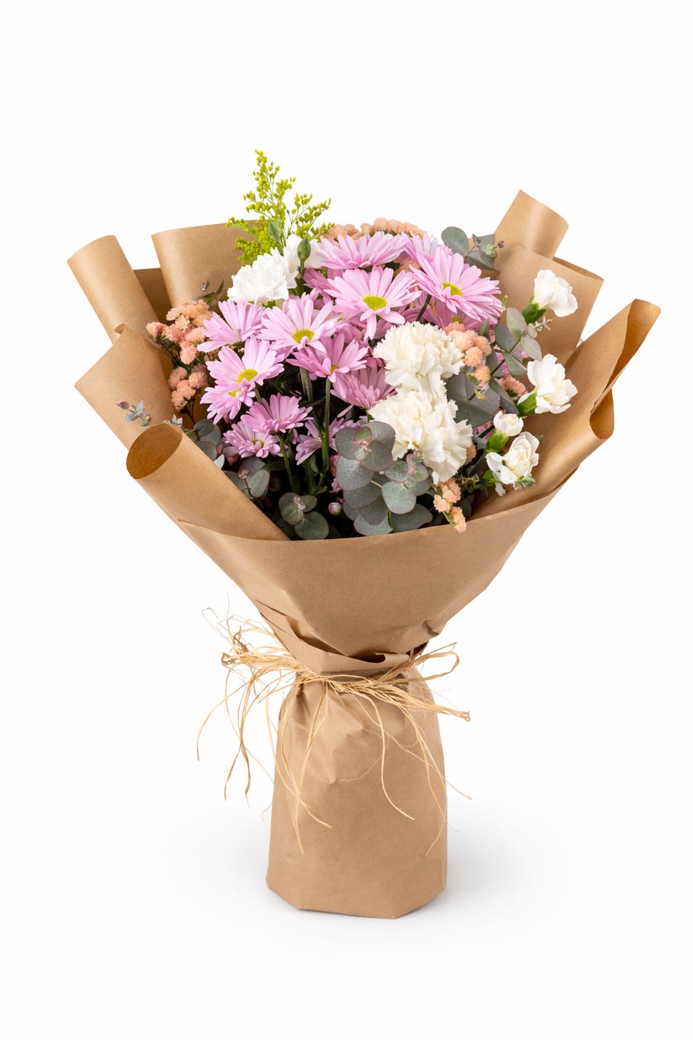 Punica Çiçek Evi’nin özenle hazırladığı bu özel buket, pembe tonların enerjisi ve beyaz çiçeklerin zarafeti ile bir araya getirilmiştir.