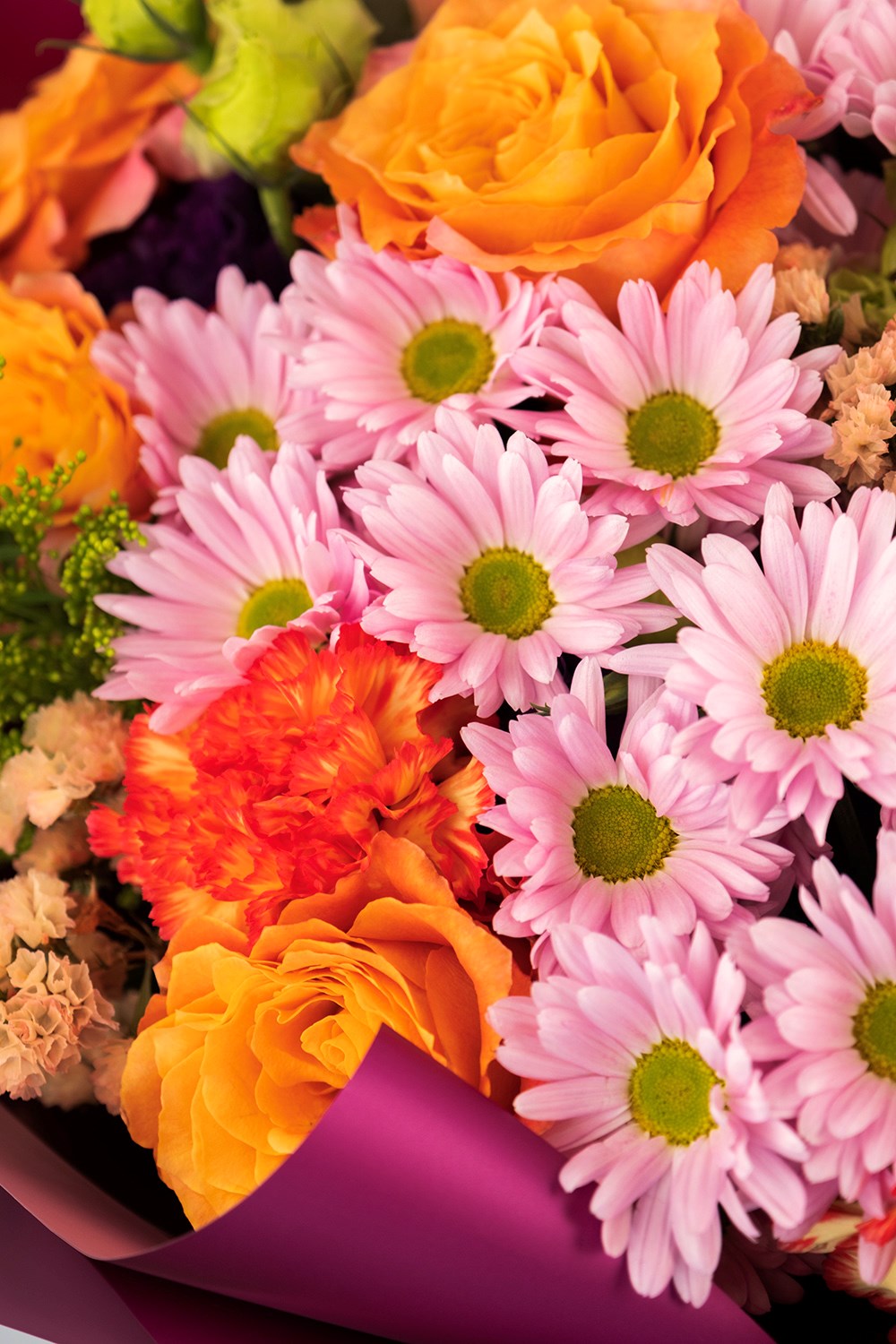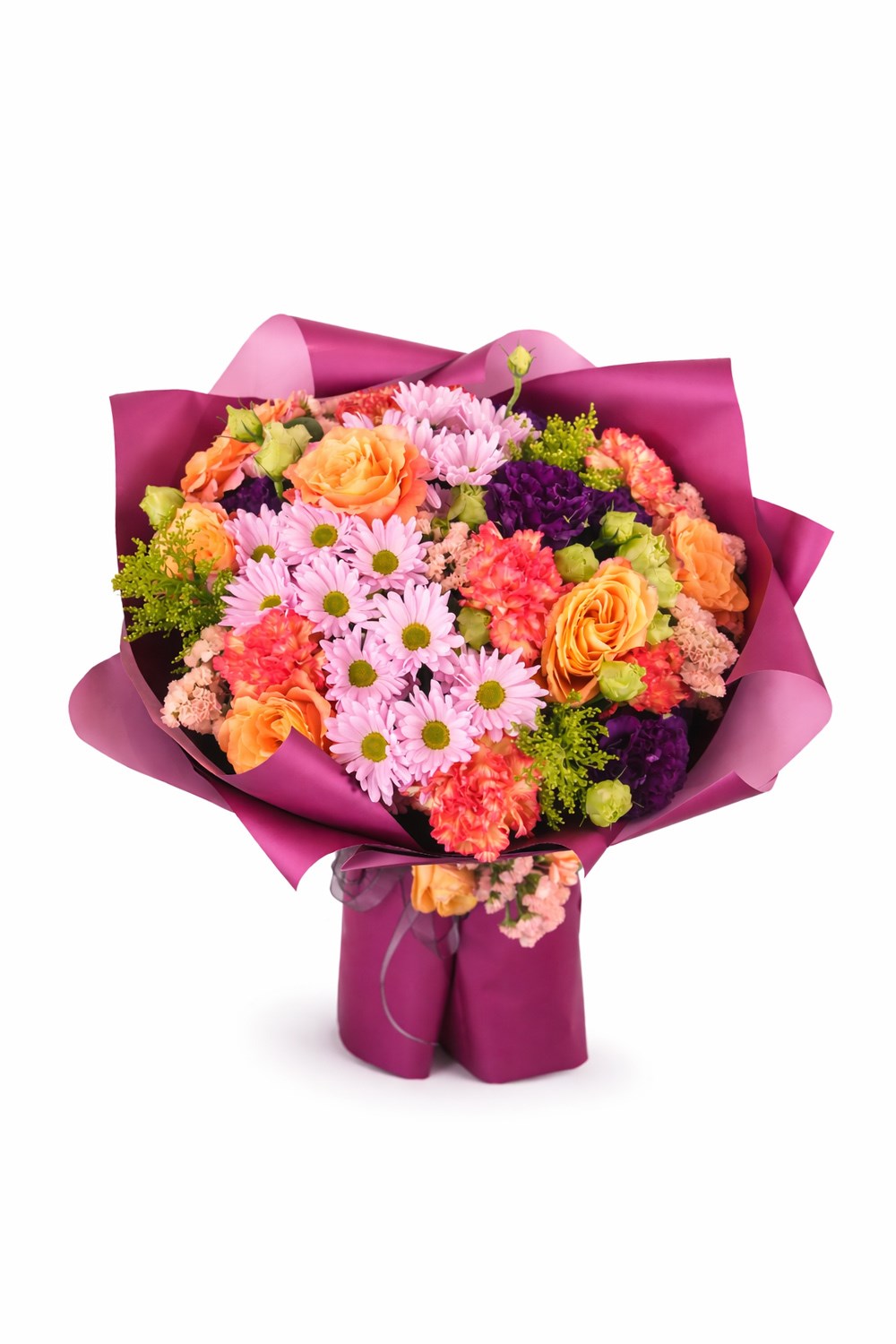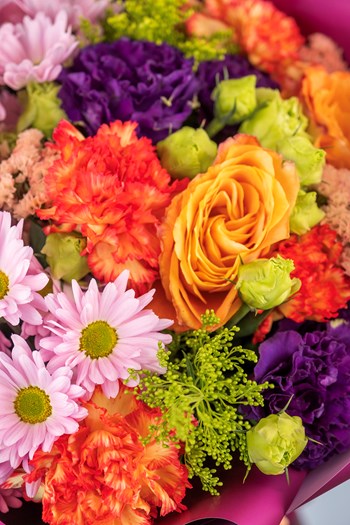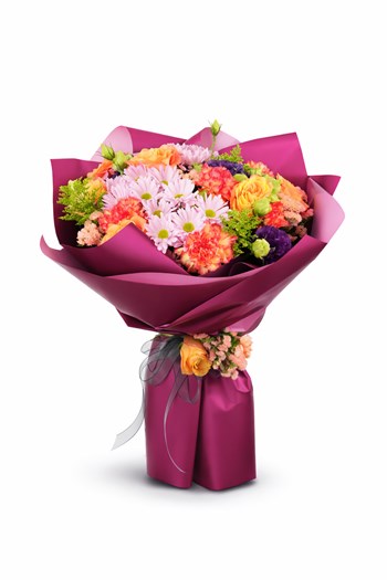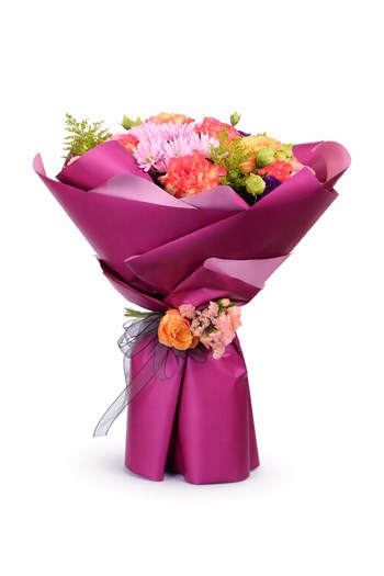 Punica Çiçek Evi tarafından hazırlanan Joy Mix buketi, farklı renklerde çiçeklerin uyumlu kombinasyonu ile oluşturulmuştur.