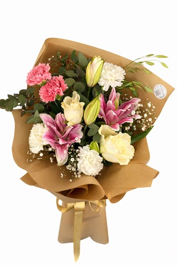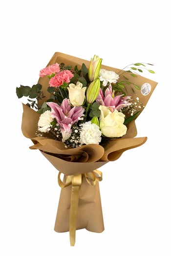 Doğal kraft ambalaj ve zarif kurdele detayı ile tamamlanan bu buket; hem klasik hem modern zevklere hitap eden şık bir çiçek seçeneğidir.