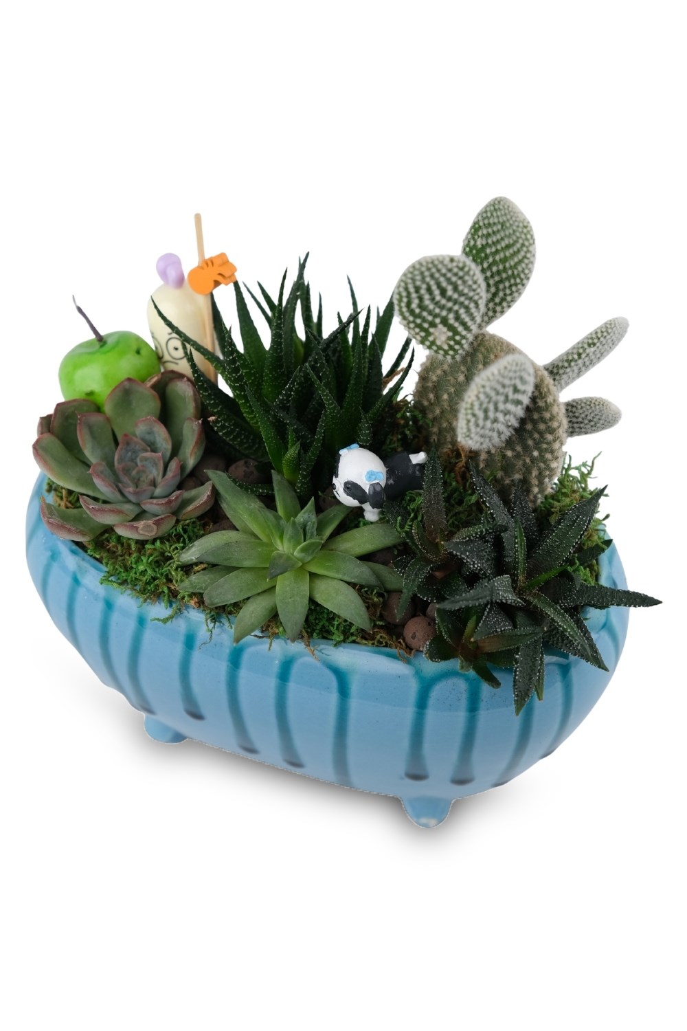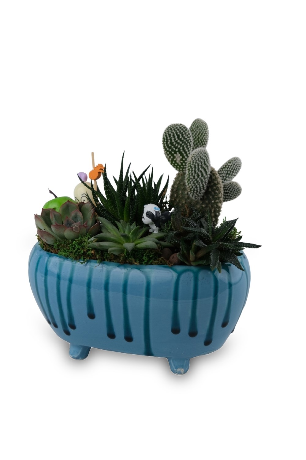 Sukulent & Kaktüs Aranjmanı – Mavi Ayaklı Seramik Tasarım