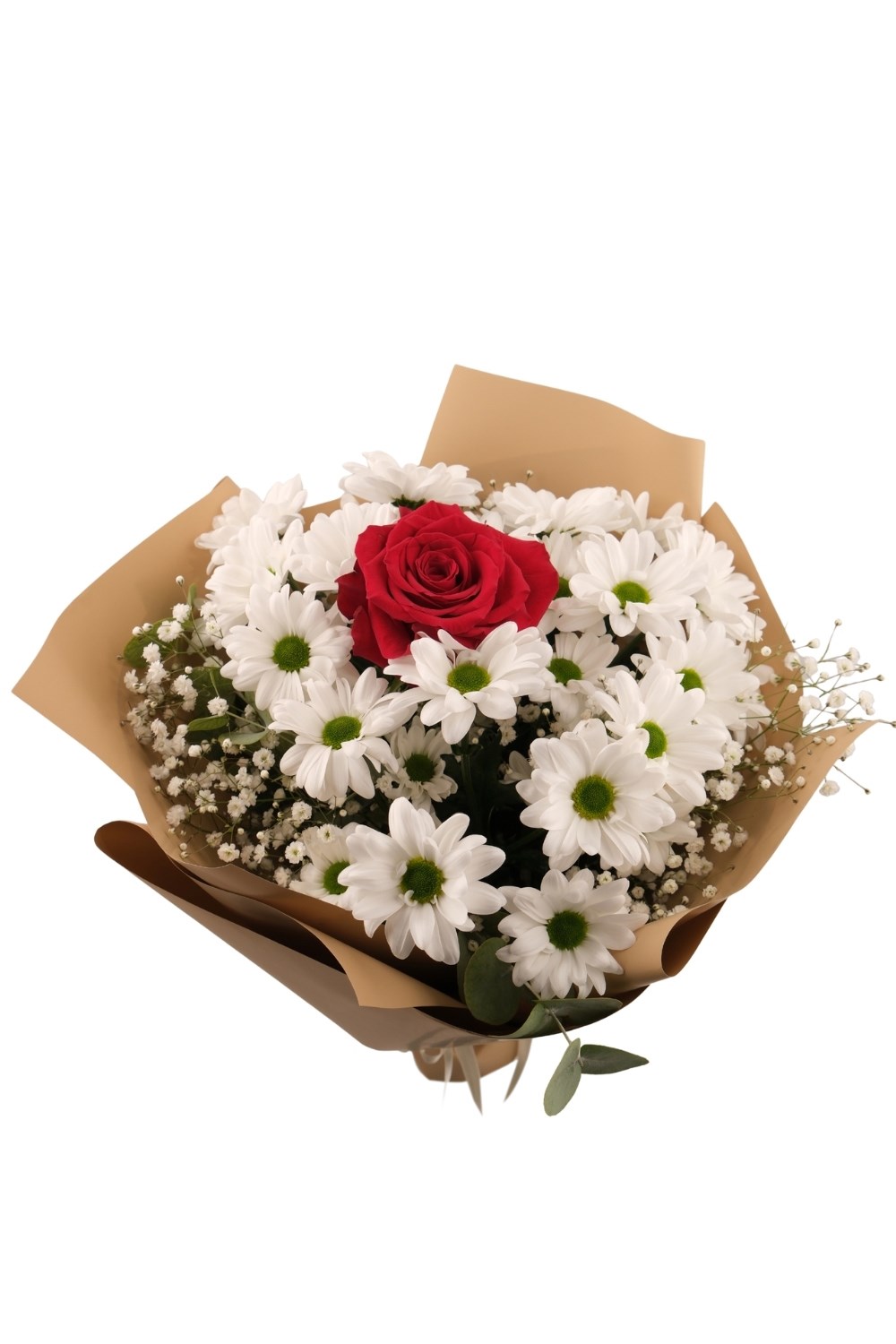🌹 Tek Kırmızı Gül & Papatya Buketi